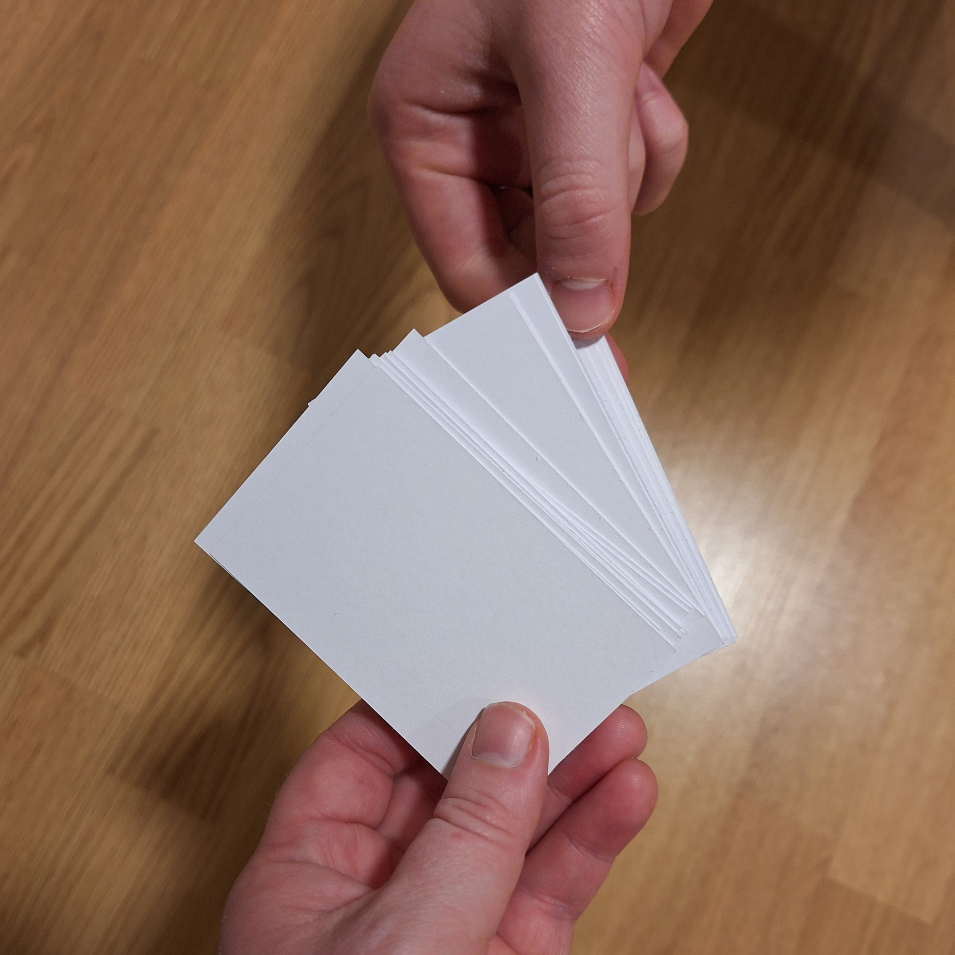 Korta vert levert i ein liten gråpapirpose som kun er bretta bakover, så det går an å putta oppi nokre twist eller ei anna lita gåve saman med korta, viss du skal gje den til nokon "med noko lite ekstra".