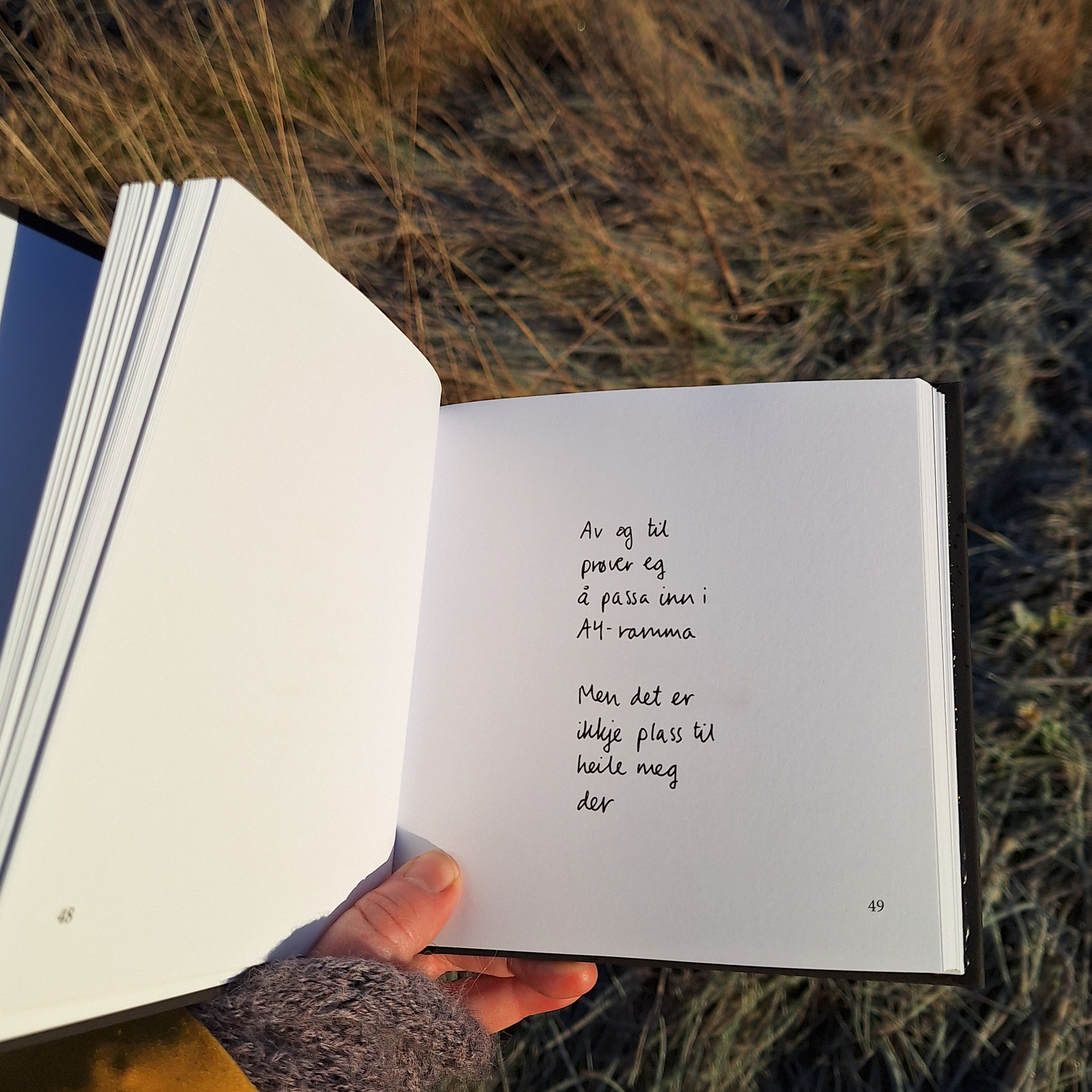 Ei bok full av mjuk styrke og tru på nye vegar. Korte dikt du kan slå opp i når hjartet treng å hente seg inn att.