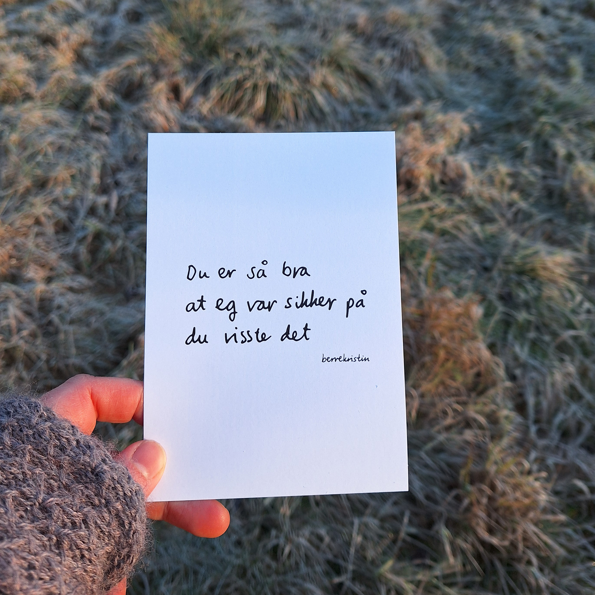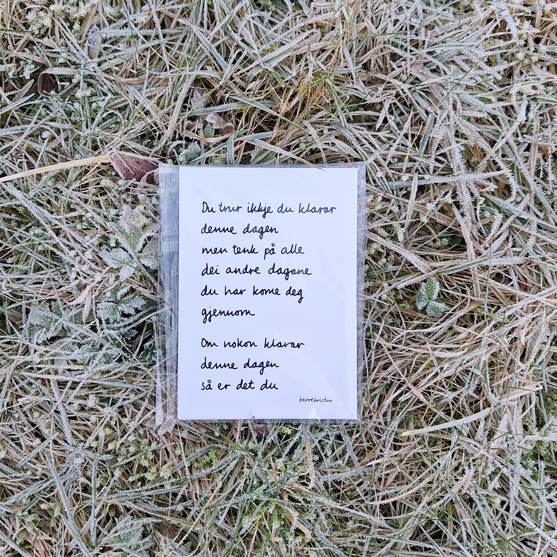 Ti diktkort med varme ord til oppmuntring og glede. Fine å leggja ved ei gåve, bruka som bokmerke, hengja på kjøleskapet eller senda til nokon du vil lyfta.