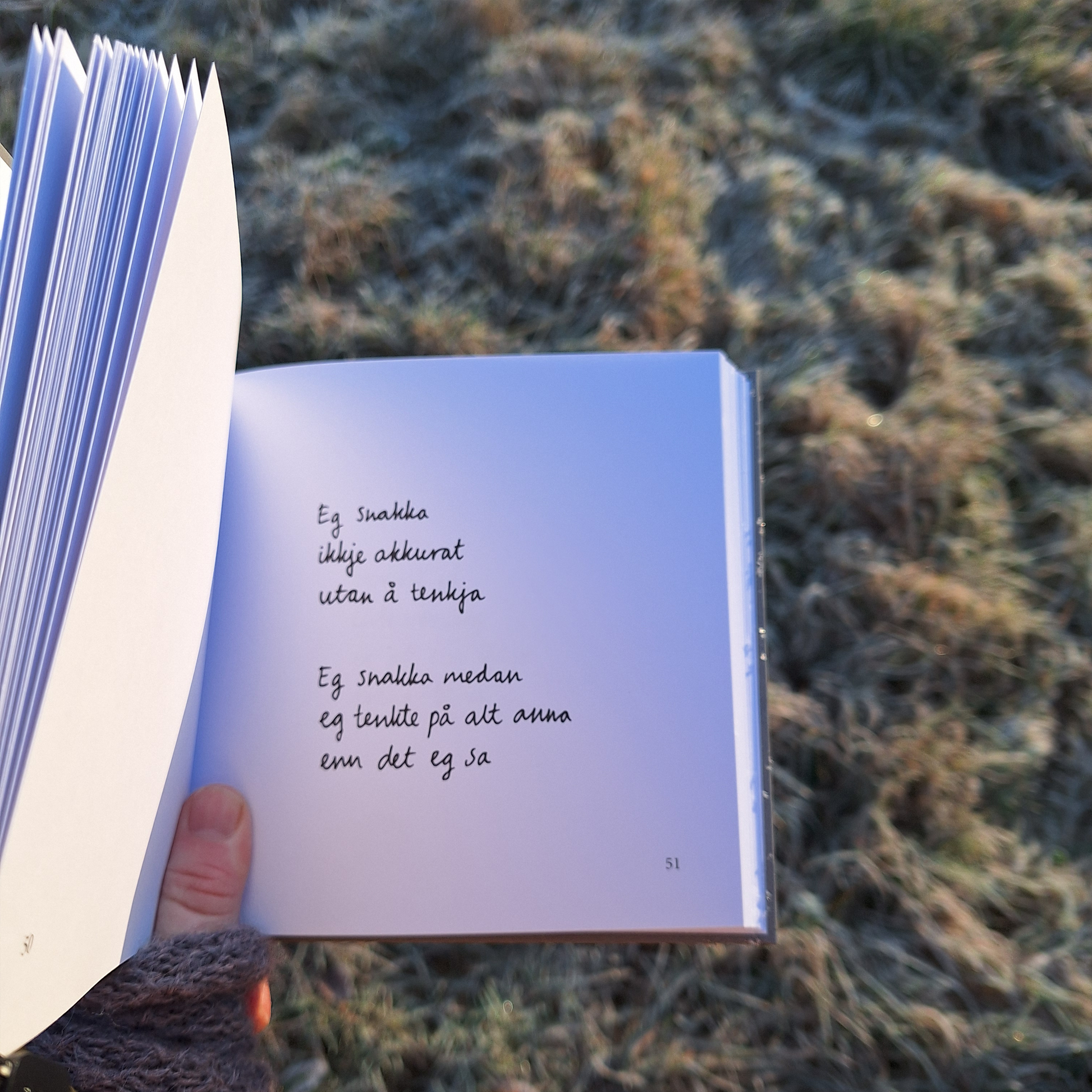 Ei lita diktbok full av håp, kvile og mjuke tankar. Kort, nær og lett å lesa – ei bok som møter deg akkurat der du er, og minner deg på å vera til stades.